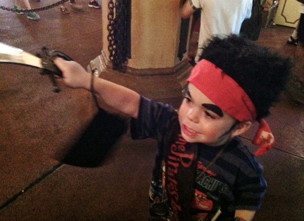 Being in Disney World for only 2 days, Zachary (my little Grandson) is already portraying a little Pirate in full costume and make-up, he seems to be taking his role quite seriously. Being the child of the “ultimate” Disney fan, my daughter, Kelly, Zachary has been absorbed in the World of Disney since he was born. Already having seen most of the Disney films, and of course, somehow knows the name of every Disney car from the Car Movies, he is having the time of his life. Of course, Zachary was Mickey Mouse for his 1st Halloween.