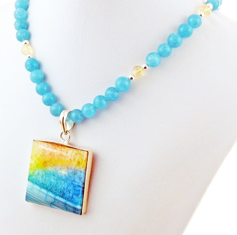 RivendellRocksSedona –Painted Agate Blue Quartz Citrine Necklace